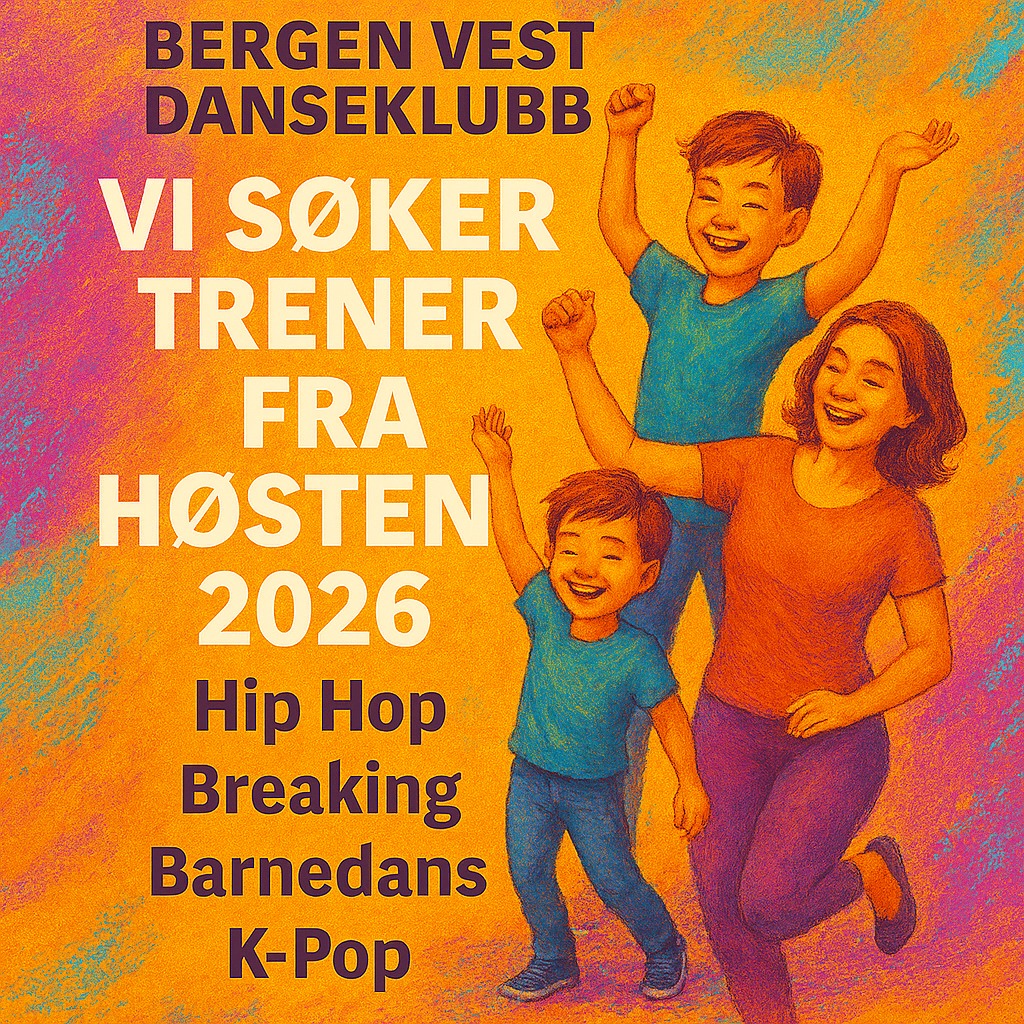 Bergen Vest Danseklubb søker Trenere som vil være med å skape danseglede. Vi søker trenere innen Breaking, Hip Hop, Barnedans og K-pop. Vi er også åpen for andre dansestiler.